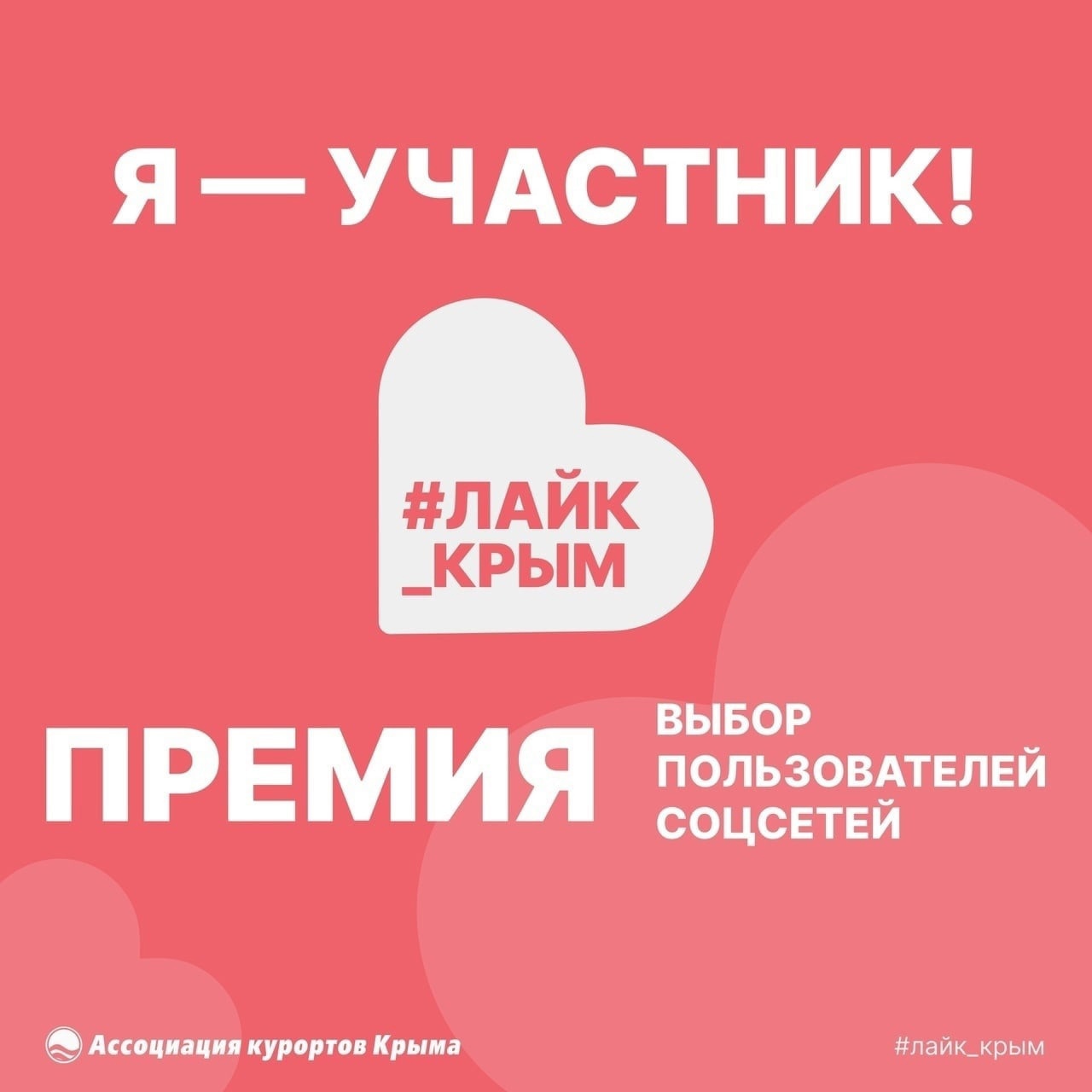 #лайк_крым – это премия в области упоминаний и публикаций в социальных сетях о туристических объектах Крыма. Организовывает и проводит ее Ассоциация курортов Крыма. А рейтинг формируете Вы, дорогие гости!